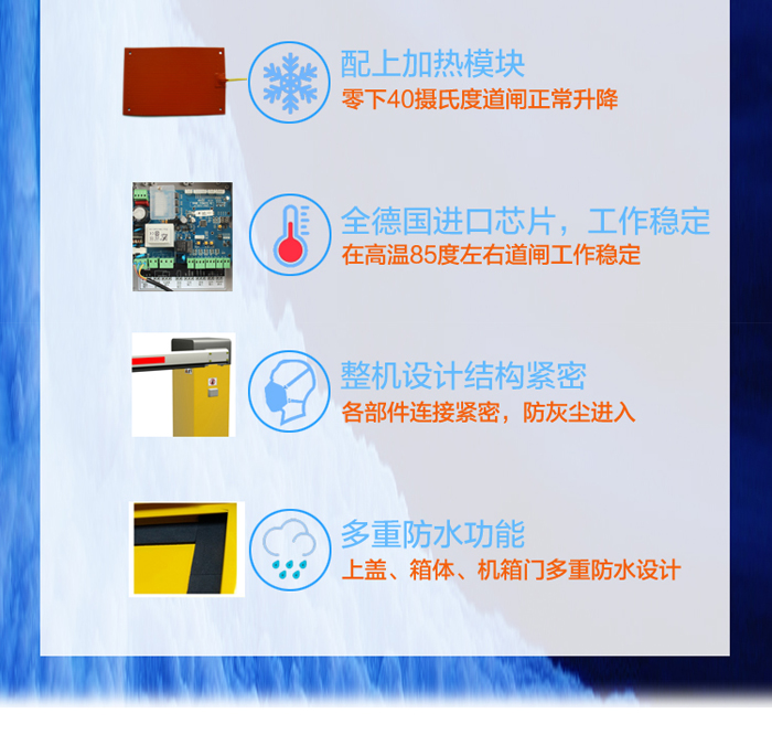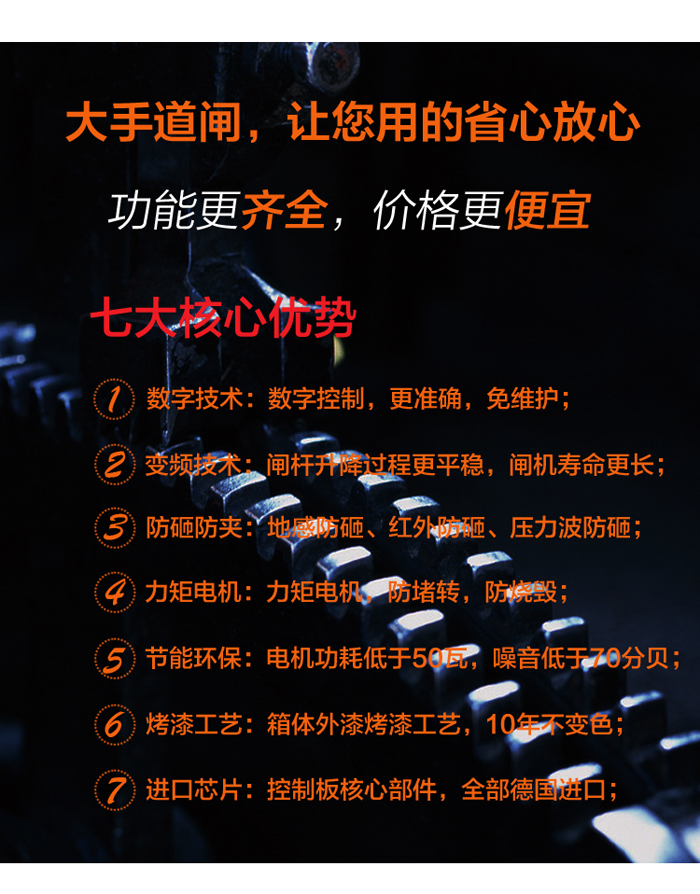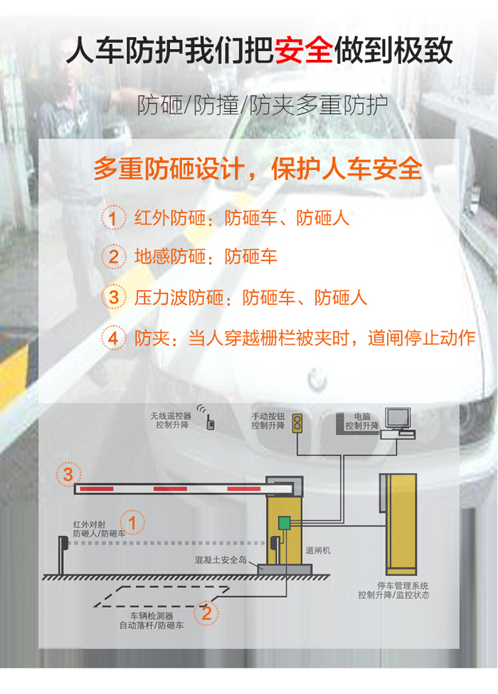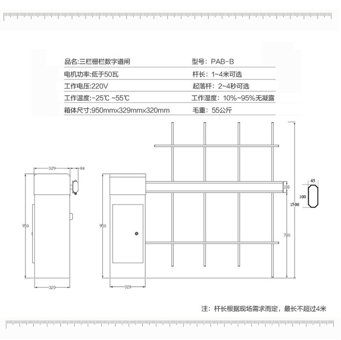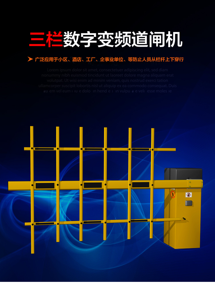 三欄柵欄數字道閘-B型,外觀結構由三欄柵欄和道閘箱體組成,美觀實用。三欄道閘采用100W的一體化減速力矩電機,堵轉時無電流沖擊,無過熱,保護延長控制器的使用壽命。由于是三欄柵欄的原因,其升降速度需要緩慢一些;加上三欄道閘最大優勢,可以防止人員從柵欄底下進出和柵欄上方跨進跨出過功率大主要安裝在各車輛進出收費口;因此該道閘非常適合一些較為高檔、隱蔽性需求性強的停車管理場合。