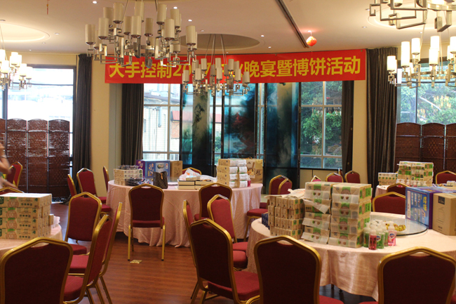 晚宴開始前,大手公司總經理馬總做了精彩的致辭 晚宴在一片歡快、幸福中度過。宴結束后,大家提著大包小包戰利品離開,彼此的臉上都期盼著對公司來年的更精彩的博餅活動。
